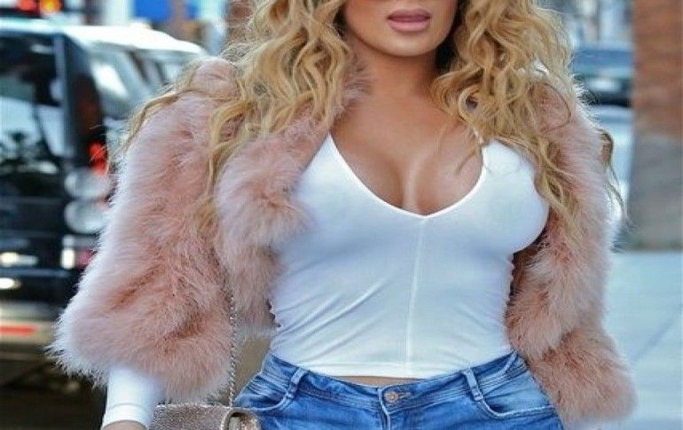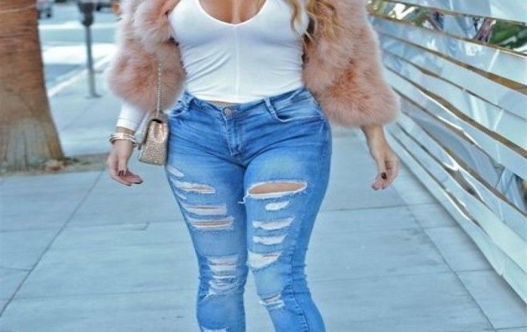 ABD'li ünlü yıldız göğüs dekolteki ve yırtık pantolonlu kıyafetiyle meraklı bakışları üzerinde topladı.