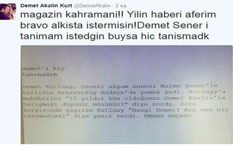 Annesiyle yemeğe çıkan eski mankene gazeteciler "Demet Akalın ile barışmayı düşünüyor musunuz?" sorusunu yönelttiler.