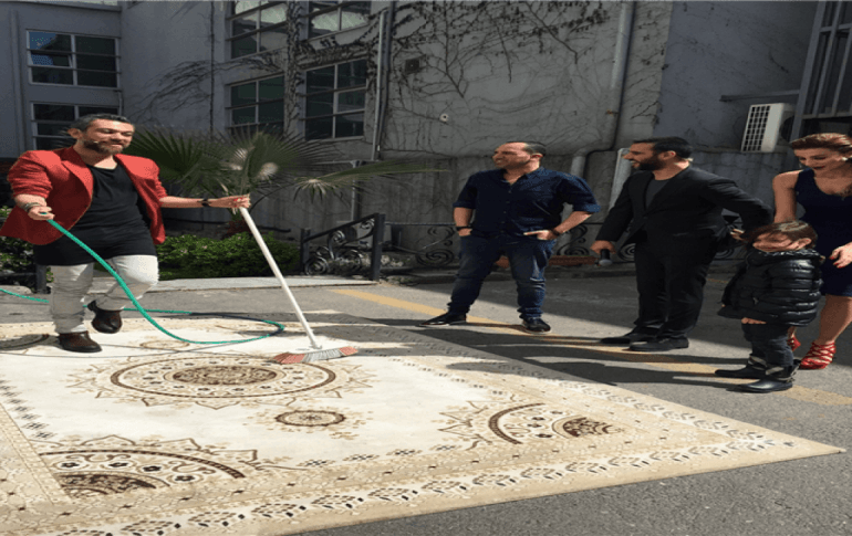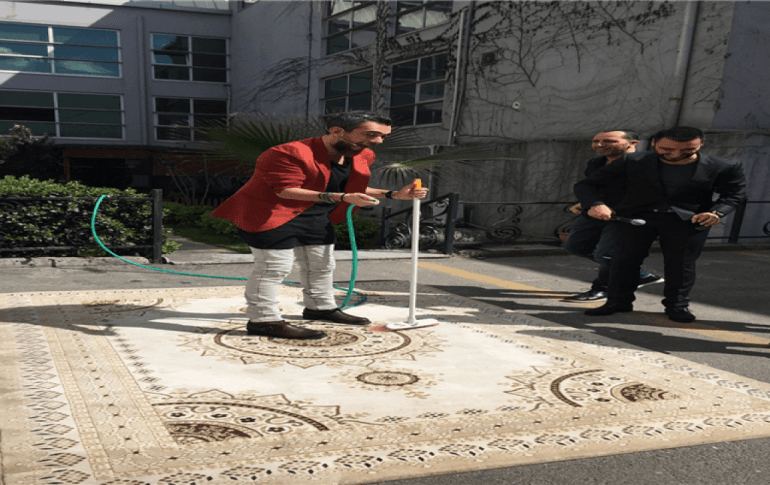 Canlı yayında halı yıkadı
