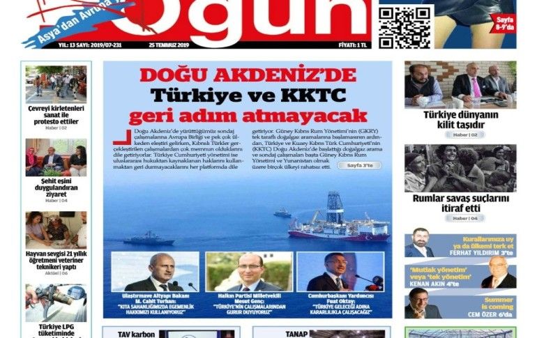 Gün Medya tarafından yayınlanan Ogün Gazetesinin, 25 Temmuz 2019 basım tarihli 232. sayının egazete formatı.