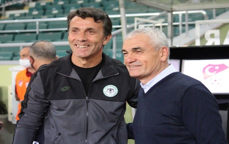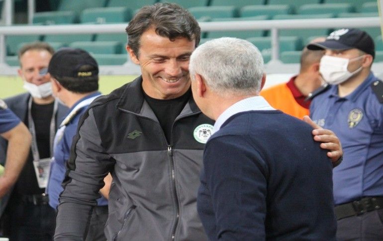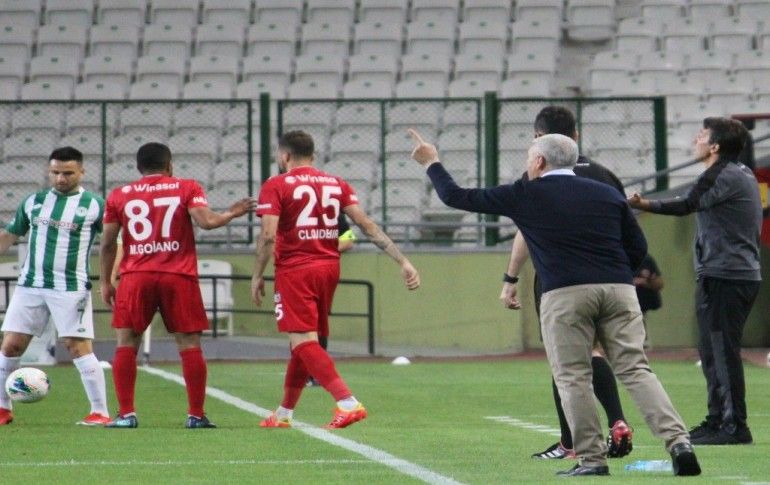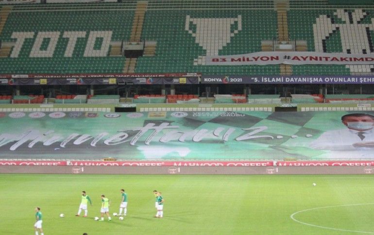 Süper Lig'in 28. haftasında İttifak Holding Konyaspor, Konya Büyükşehir Belediyesi Stadında Demir Grup Sivasspor ile karşılaştı. Stadın Doğu Alt Tribünününde yer alan pankartta, yeni tip koronavirüs (Kovid-19) sürecini başından it...