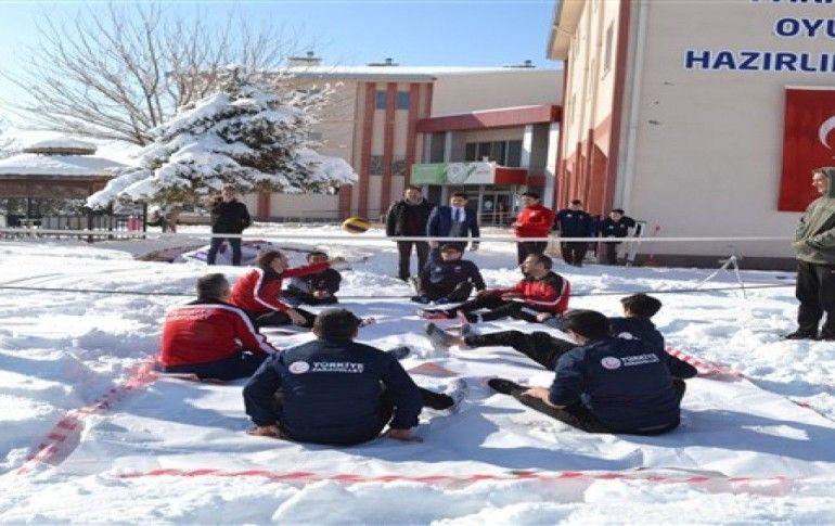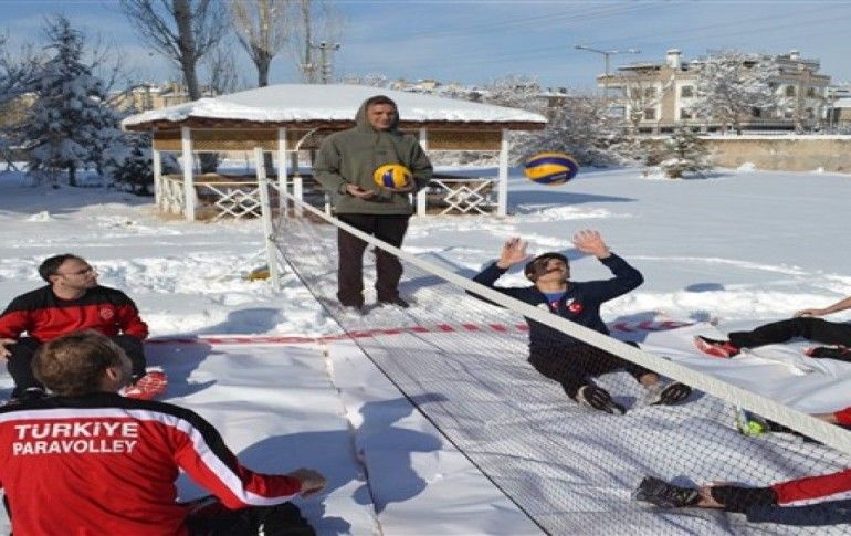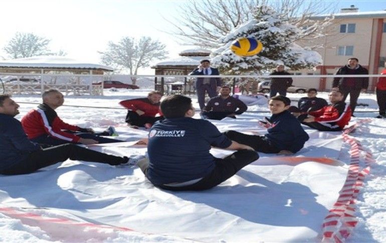 Oturarak Voleybol Milli Takımı Başantrenörü Yusuf Kenan Kök, gazetecilere yaptığı açıklamada, kar üzerinde yaptıkları antrenmanı, Sarıkamış şehitlerini anmak amacıyla gerçekleştirdiklerini belirtti.