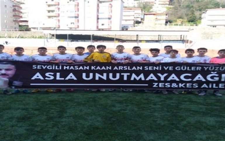 Sahaya ‘sevgili Hasan Kaan Arslan seni ve güler yüzünü asla unutmayacağız’ yazılı pankart ile çıkan Zonguldak Ereğlispor tribünler tarafından ayakta alkışlandı.
