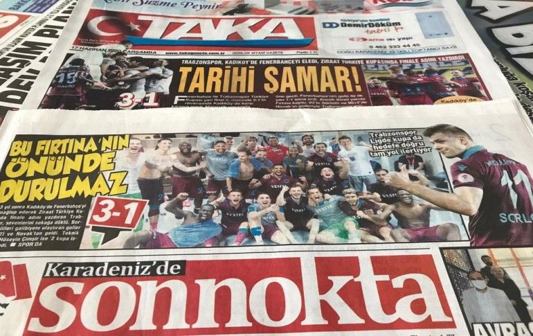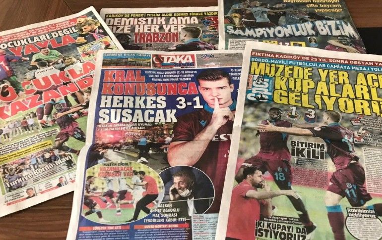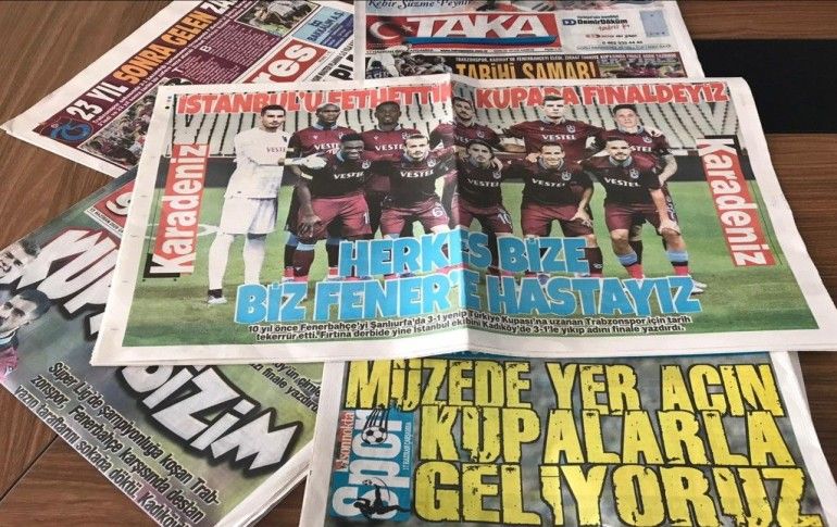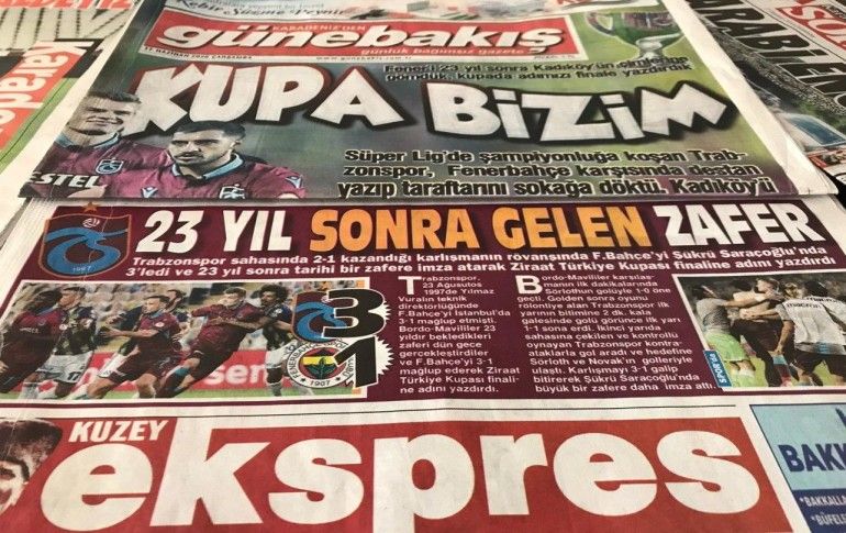 Trabzon'da yerel gazeteler, Ziraat Türkiye Kupası yarı final rövanşında Fenerbahçe'yi 3-1 yenen ve finale yükselen Trabzonspor'a övgü yağdırdı.