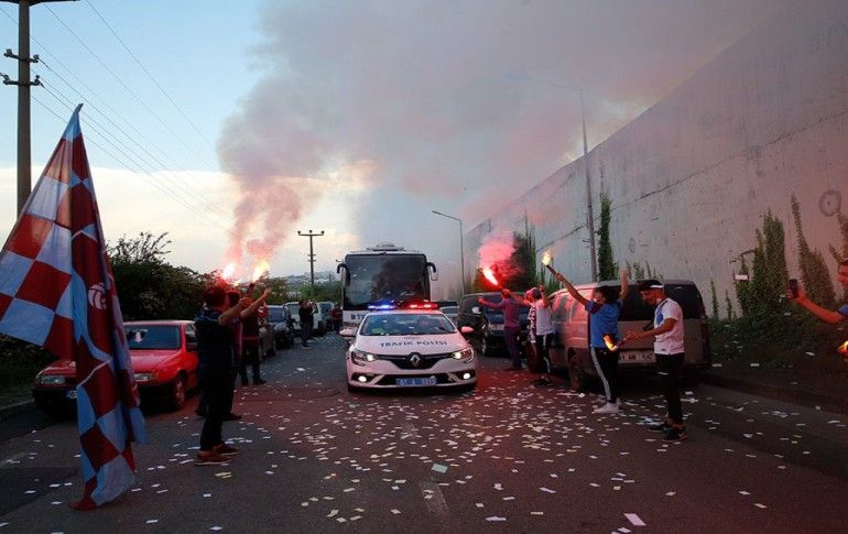 Trabzonspor kafilesi, Süper Lig'in 27. haftasında yarın deplasmanda Göztepe ile oynayacağı maç için İzmir'e gitti. Mehmet Ali Yılmaz Tesisleri'nden Trabzon Havalimanı'na hareket eden bordo-mavili kafileyi, çok sayıda taraftar meşa...