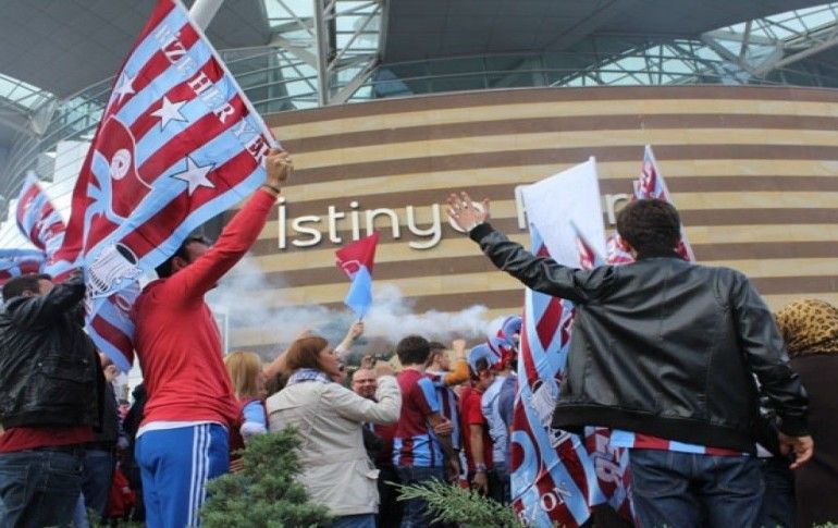 İstinye Park önünde öğle saatlerinde bir araya gelen bordo-mavili taraftarlar, büyük bir grup ile meşaleler yakıp, sloganlar atarak TFF binasına yürüyüşe başladı.
