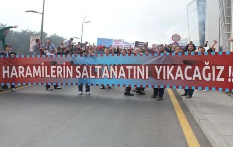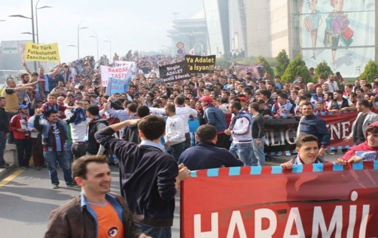Trabzonspor taraftarları, şike protestosu ve kupa için Türkiye Futbol Federasyonu'na yürüyüş düzenledi.
