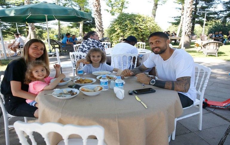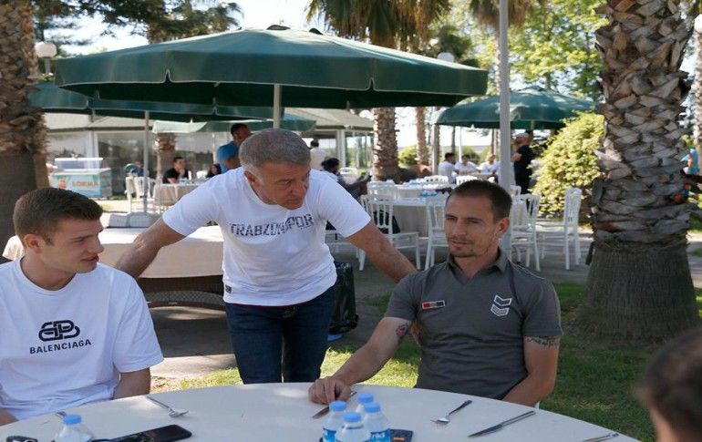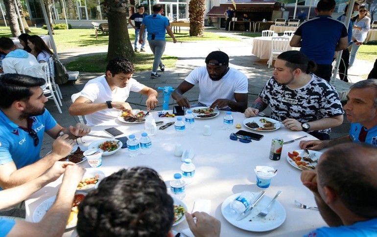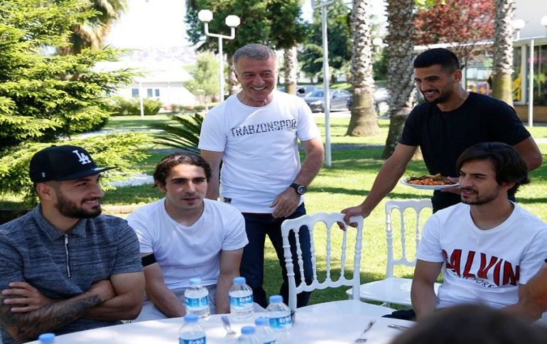 Trabzonspor'da Kulüp Başkanı Ahmet Ağaoğlu (ortada), futbolcular ve aileleri, kulübün düzenlediği yemek organizasyonunda bir araya geldi. Ağaoğlu, Pereira (sağda) ve Alexander Sörloth ile sohbet etti.