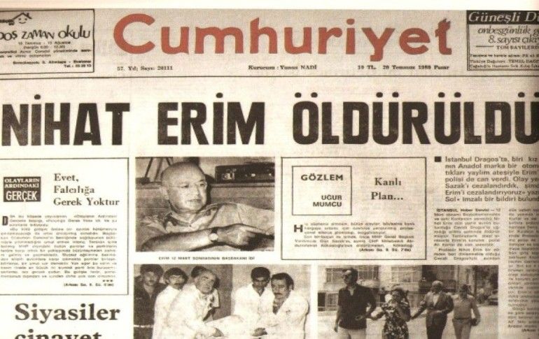 1980 - Eski başbakanlardan Nihat Erim'i öldürenlerin yakalandığı açıklandı.