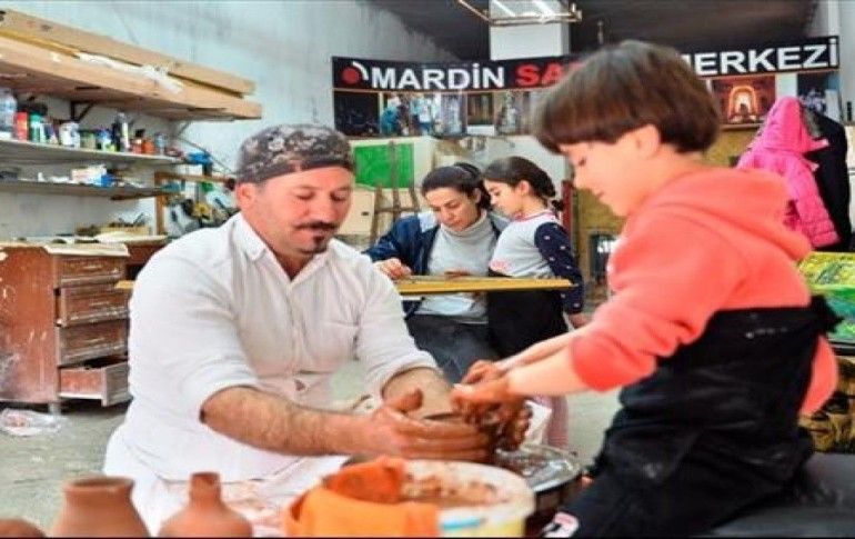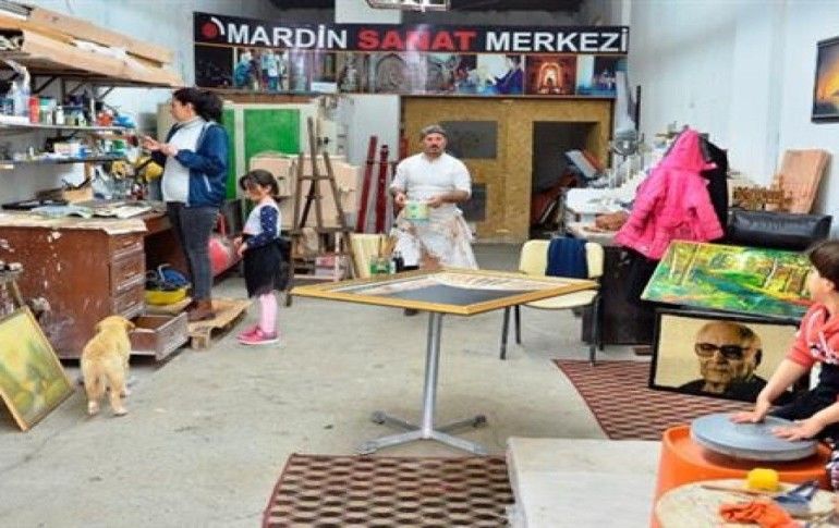 Ressam ve heykeltıraş Nurettin Çakmak (39), Suriyeli eşi Agrin (33) ile evlerinin alt katında atölye kurdu. Çift, 7 ve 8 yaşlarındaki çocukları Ranya ve Aram'ı da "Mardin Sanat Merkezi" adını verdikleri bu atölyede büyüttü.
