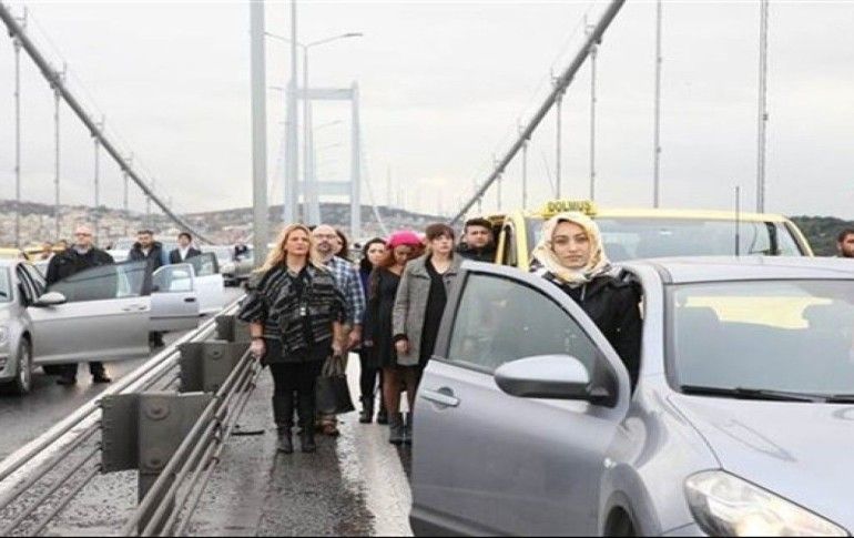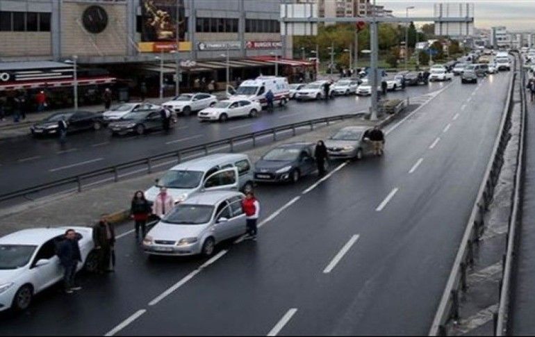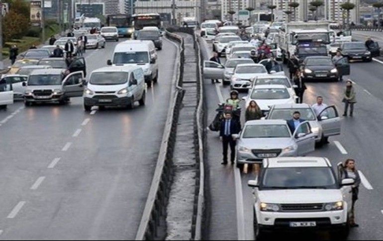 2 22 Otoyollarda duran özel araçlardan, servislerden, otobüslerden inen vatandaşlar saygı duruşuna geçti.