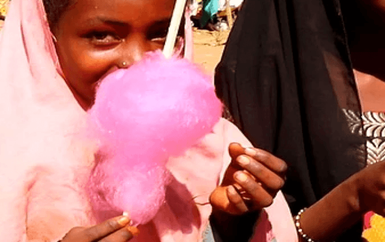 İlk kez pamuk şeker yiyen Afrikalı çocukların mutluluğu