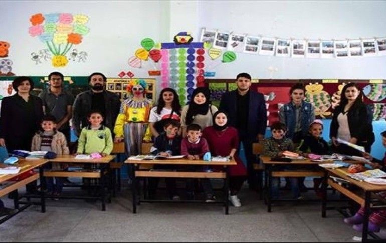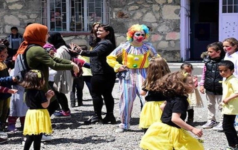 Hediyelerin dağıtımının ardından palyaço kıyafeti giyen üniversite öğrencileri, gün boyunca okul bahçesinde şarkılar eşliğinde köy çocuklarıyla oyunlar oynadı.