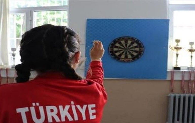 Denizli'de okulun yemekhanesine kurulan hedef tahtasında başladığı dartta kısa sürede milli sporcu olan Merve Erden, okuluna Akdeniz üçüncülüğü madalyasını getirdi.
