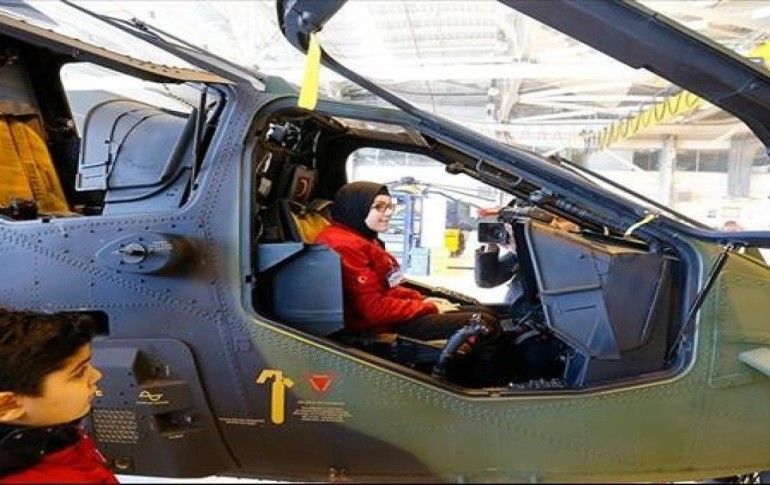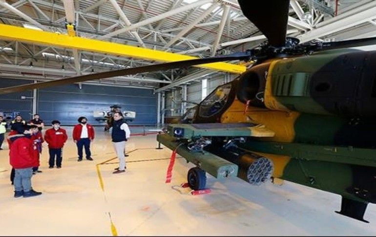 Tesislerde, "T-129 ATAK Taarruz ve Taktik Keşif Helikopteri"ni inceleyen öğrenciler, yetkililerden bilgi aldı. Öğrenciler, helikopterin kokpitine de binme imkanı bulurken, merak ettiklerini TUSAŞ yetkililerine sordu.