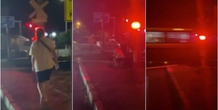 Bu sırada bir trenin bariyerin bulunduğu raylara doğru hızla yaklaştığını gören gruptaki bir genç kız, "tren kaza yapar" diyerek hemzemin geçide yaklaştı.