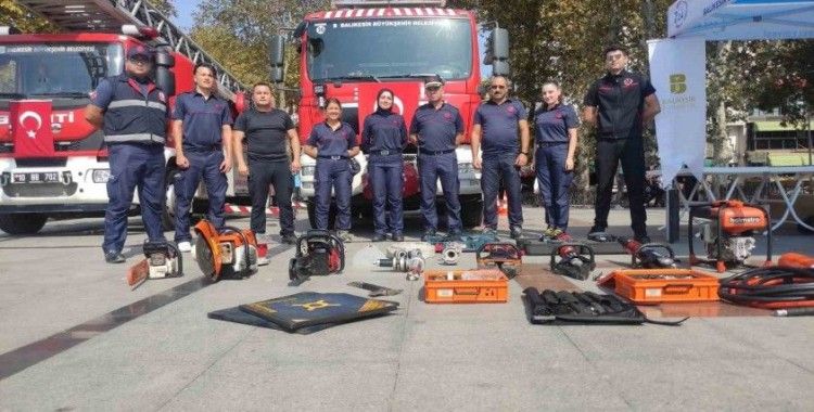 Balıkesir Büyükşehir Belediyesi Güney Marmara Gruplar Amiri Tarkan Tepeler, bilgilendirmelerde bulunarak “İtfaiye Haftası nedeniyle vatandaşları afetlere hazırlama noktasında bilgilendirme ve bilinçlendirme çalışmaları yapıyoruz. Bu tanıtım stantlarımızı il genelinde tüm ilçelerimizde gerçekleştiriyoruz. Burada afetlerde kullandığımız ilk yardım ve kurtarma malzemelerimizi sergiliyoruz. Vatandaşlarımıza bu malzemelerin hangi konumda ve nasıl kullanacağımızı anlatacağız. Güney Marmara Gruplar Amirliği bünyesinde 53 personel, 5 adet ilk müdahale aracımız, 2 merdivenli aracımız olmak üzere toplam 7 aracımızla çalışmalara devam ediyoruz” ifadelerinde bulundu.