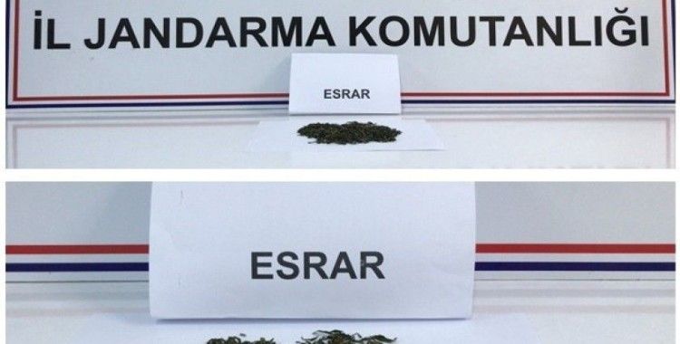 Bilecik İl Jandarma Komutanlığı ekiplerince Bozüyük bölgesinde icra edilen faaliyette 2 şahsın uyuşturucu madde bulundurduğu tespit edildi. Jandarma ekipleri adli makamlarla gerekli koordinasyonları sağlayarak K.A. ve N.K. isimli şahısların üzerlerinde ve araçlarında arama yapıldı. Yapılan arama sonucunda 16 gram esrar maddesi ele geçirildi. Cumhuriyet Savcısının talimatıyla elle geçirilen malzemelere el konulurken şüpheli 2 şahıs gözaltına alınarak haklarında yasal işlem başlatıldı.