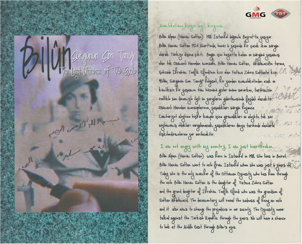 Bilûn Hanım Sultan'ın hayatını ve sürgün zamanını anlatan, geçtiğimiz günlerde galası düzenlenen Gün Medya Grup'un (GMG) sponsorluğunu üstlendiği TRT yapımı olan yönetmenliğinin Kerime Senyücel'in üstlendiği tek bölümlük 'Bilûn - Sürgünün Son Tanığı' belgeseli çekilmişti.