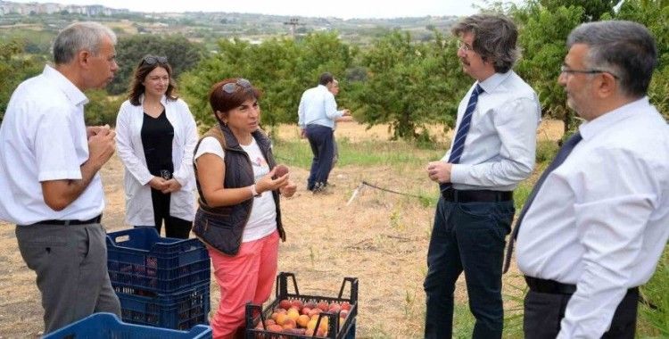 BUÜ Rektörü Prof. Dr. Ferudun Yılmaz, Rektör Yardımcıları Prof. Dr. Adem Doğangün ve Prof. Dr. Zekeriyya Arı, Ziraat Fakültesi Dekanı Prof. Dr. İlhan Turgut ve Üniversite Genel Sekreteri Osman Dikmen ile birlikte çalışmaların yürütüldüğü şeftali bahçelerini ziyaret etti.