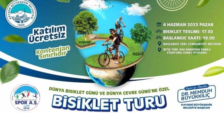 Kentin dört bir yanında yediden yetmişe Kayserililere hemen her alanda hizmet götüren Kayseri Büyükşehir Belediyesi, Dr. Memduh Büyükkılıç başkanlığında sağlıklı ve çevreci bir ulaşım aracı olan bisiklet kullanımını yaygınlaştırmak için etkinliklerini de sürdürüyor. Kayseri Büyükşehir Belediyesi bünyesinde faaliyet gösteren ve minikler başta olmak üzere tüm Kayserililere sporu sevdiren Spor A.Ş. 4 Haziran 2023 Pazar Günü, bisikletseverlere özel bir tur düzenleyecek. Büyükşehir Belediyesi’nin spor faaliyetlerinde öncü kuruluşu Spor A.Ş. tarafından Dünya Bisiklet Günü ve Dünya Çevre Günü temalı bisiklet turu, 4 Haziran’da gerçekleşecek.