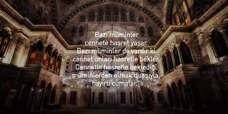 Cumanız mübarek olsun. Gününüz maddi ve manevi anlamda aydınlık, gönlünüz hoş olsun. Sizi kedere, üzüntüye sevk edecek ne kadar olumsuzluklar varsa sizden her daim uzak olsun. Allah sonumuzu hayretsin. Kurtuluşa erenlerden eylesin. Melekler daima duacınız olsun. Yüreğiniz ferah, ilhamınız bol olsun. Sevgili peygamberimiz,