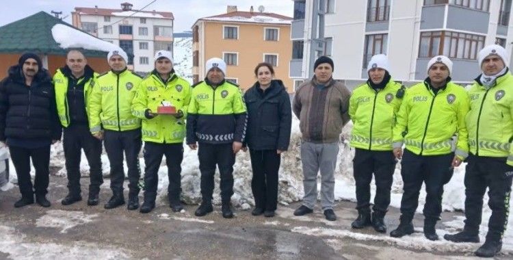 İlçedeki uygulama noktasında gerçekleştirilen sürpriz kutlamada polis memurunun doğum günü, ekip arkadaşlarınca eksi 15 derece hava sıcaklığında pasta kesilerek kutlandı.Buz gibi havada içleri ısıtan o anlar kameralara yansıdı.