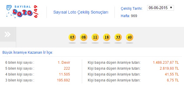 6 bilen çıkmayınca 1 milyon 486 bin 237 lira ikramiye devretti