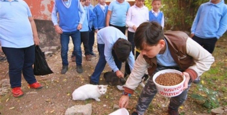 Asrın Tunçay, "Her zaman okula giderken bu hayvanları sokakta aç susuz görüyorum ve çok üzülüyorum. Ailem ve kargo çalışanları ile bir para topladık. Paramızla kedi maması aldık. Zaten evde sokak hayvanlarına mama veriyorduk." dedi.