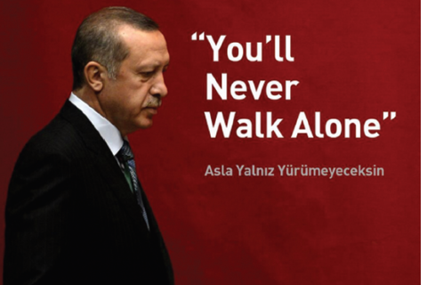 Ve Sayın Cumhurbaşkanıma da; ülkemiz, milletimiz, tarihimiz, şanımız, şerefimiz için, yürüdüğü bu kutsi ve milli yolda, her zamanki muhabbetim, sevgim ve bağlılığımla, Liverpool taraftarının meşhur şarkısındaki gibi seslenmek istiyorum;“You’ll Never Walk Alone”