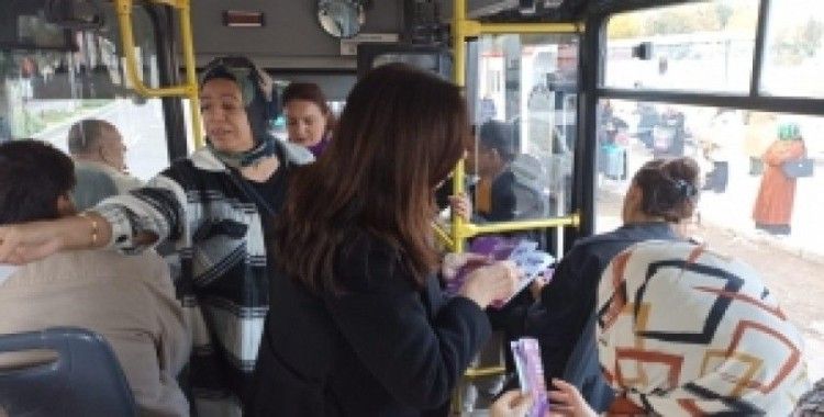 Kadın ve Aile Hizmetleri Dairesi Başkanlığı ve Yenişehir Belediyesi Kadın ve Aile Hizmetleri Müdürlüğü, Büyükşehir Belediyesi’ne ait otobüslerde broşür dağıtarak kadına yönelik şiddete dikkat çekti.